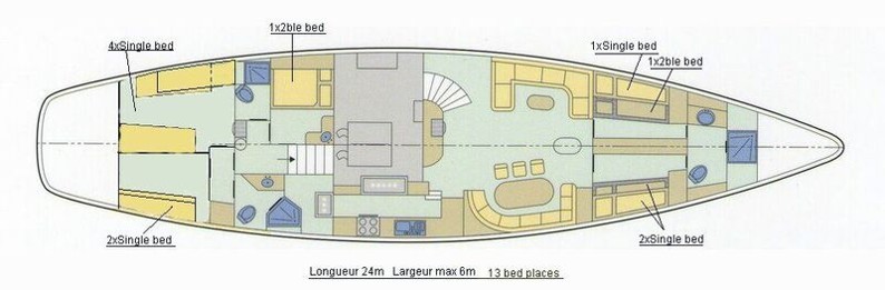 - Équipage : 3 marins (2 skippers + 1 cuisinier)
