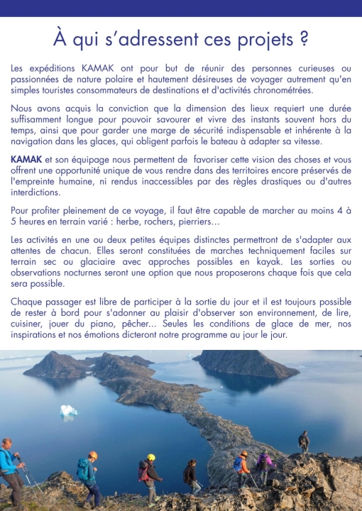Porté par l’esprit de découverte et l’amour du milieu polaire, le projet KAMAK conjugue rigueur, autonomie et émerveillement.
