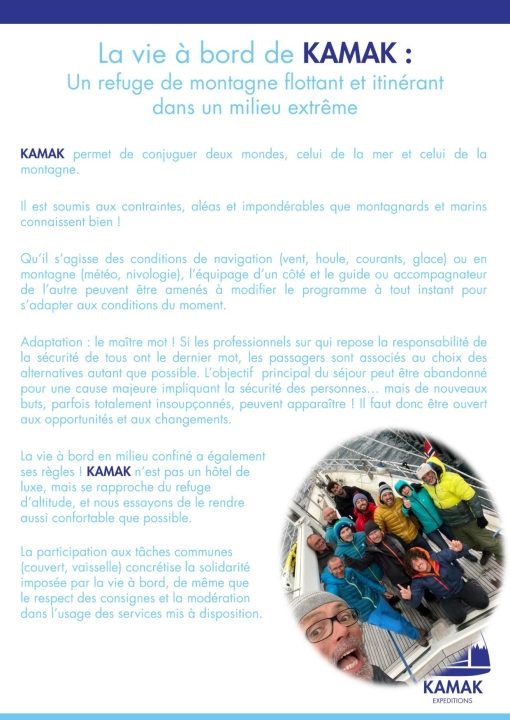 L’équipage et les passagers s’adaptent, improvisent, partagent — c’est l’esprit même de l’aventure KAMAK.