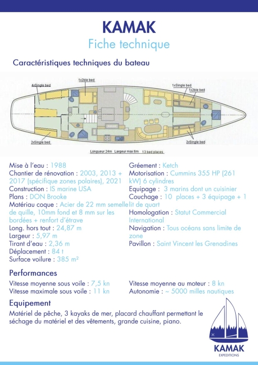 ⚙️ Fiche technique du voilier KAMAK
