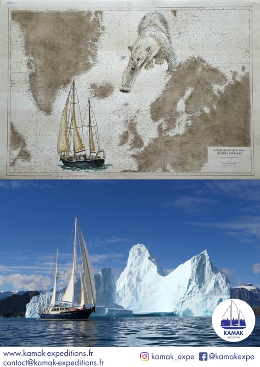 – Louise Boyd est la première exploratrice blanche à arpenter les territoires arctiques à bord d’un navire. Entre 1926 et 1941, elle y organisa 7 expéditions, notamment une où elle passa une grande partie de l’été à explorer et à cartographier les fjords situés au nord du Scoresby Sund. Nous avons eu accès à certaines de ces cartes mais nous n’avons pas eu d’échange avec des navigateurs ayant exploré ces lieux. Cela nous a donné envie de diriger la proue de KAMAK vers ces territoires riches en sommets.