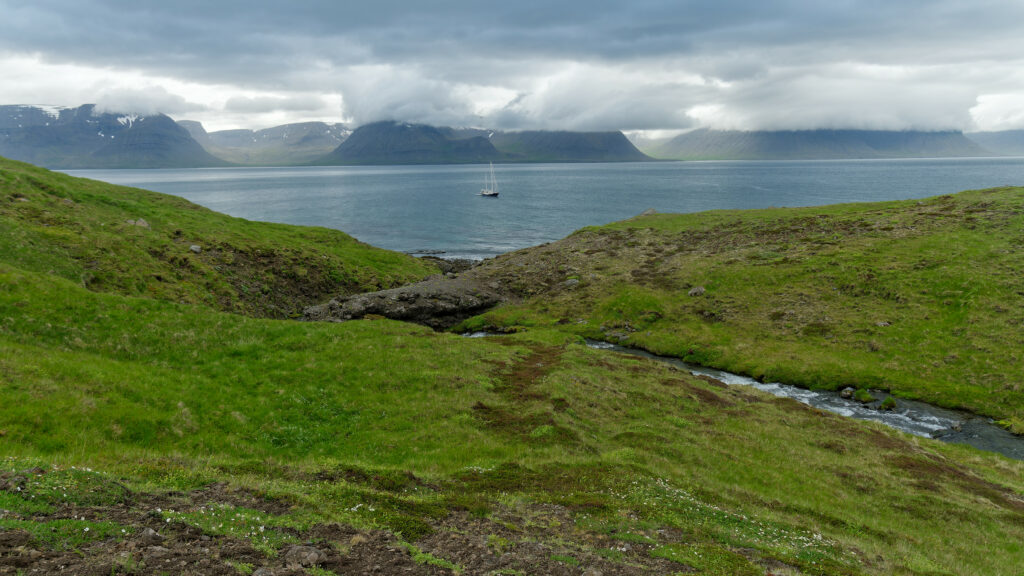 Groenland : KAMAK au mouillage dans le Scoresby Sund © Jacques Taberlet